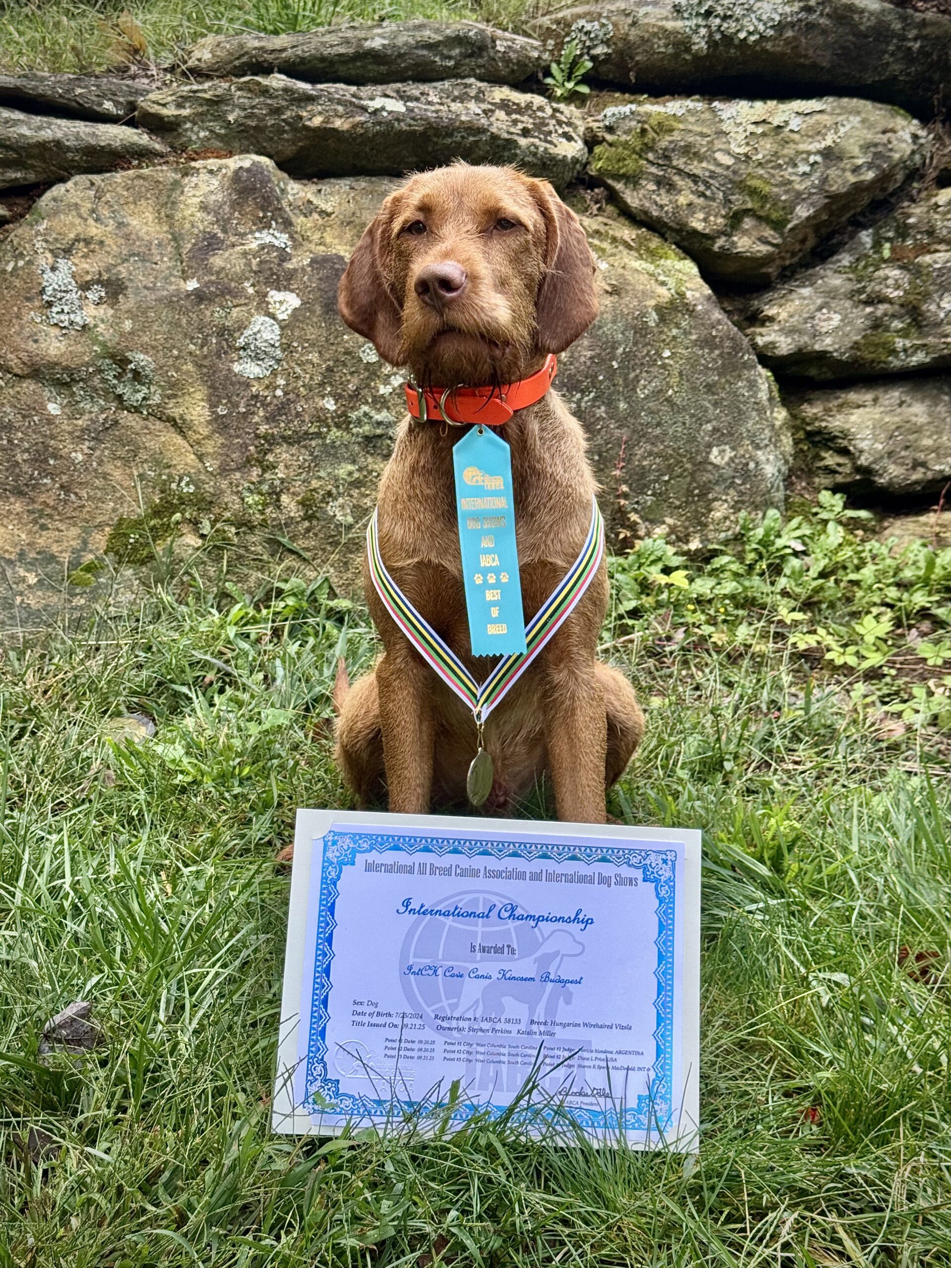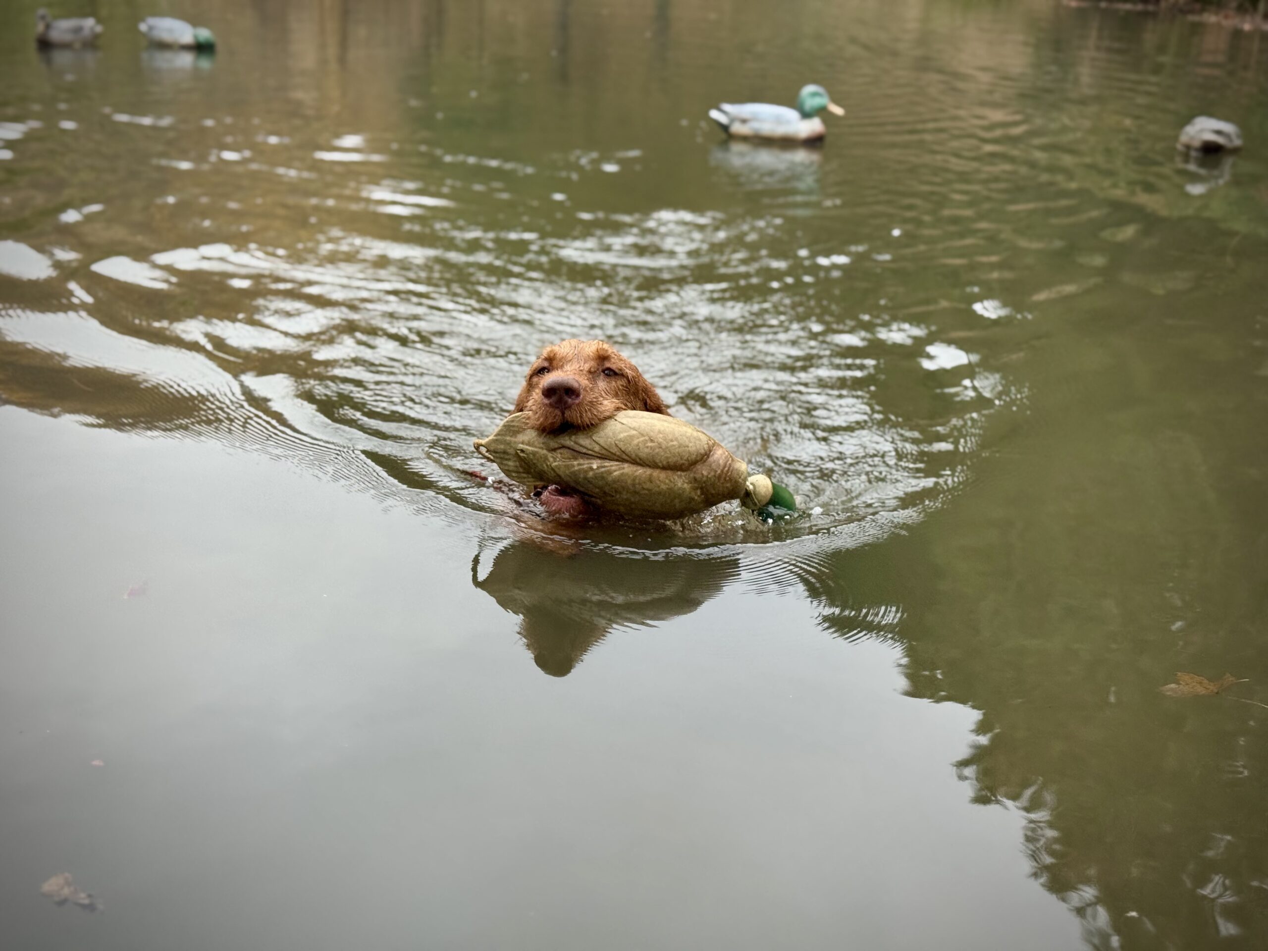 Budapest was our pick from Akác and Bam litter. Although he was the runt, he was the smallest yet the mightiest of the group. He was the fastest puppy, capable of outrunning his larger siblings when chasing a quail. He showed a strong natural interest in birds and demonstrated a love for water by the age of seven weeks.