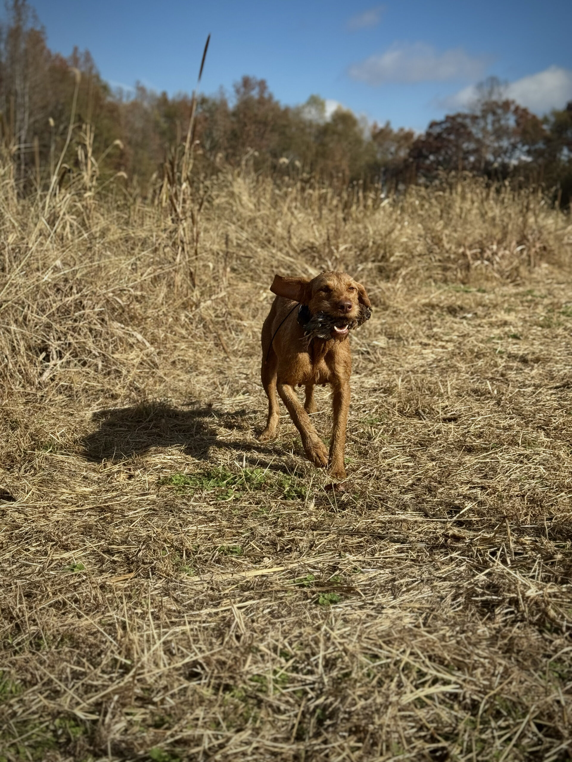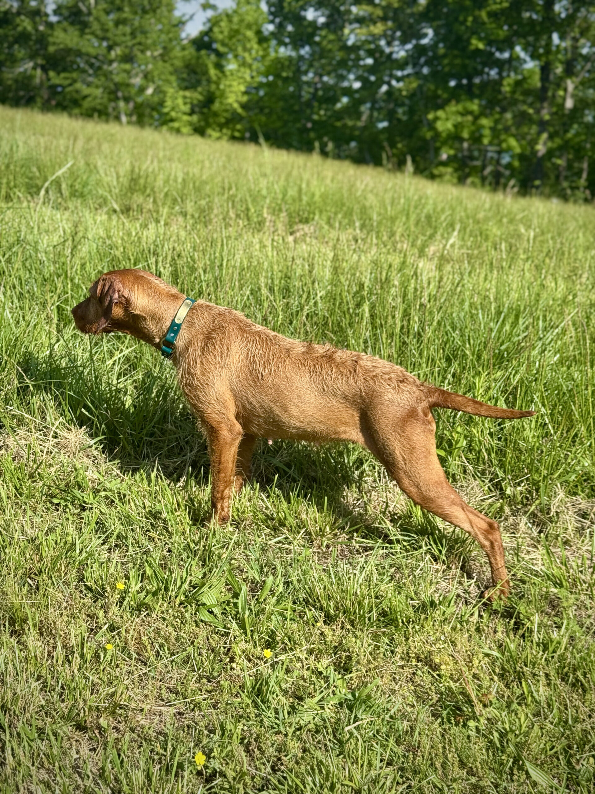 Harmat joined our family in the spring of 2025, arriving from the Zabosfai kennel in Hungary. She has a sweet disposition and loves to snuggle, but she is highly driven and eager to please once we put her to work. She consistently seeks eye contact to ensure she is meeting my expectations and strives to avoid making any mistakes.